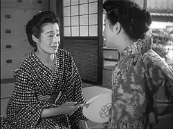 She opened an inn in the Tenryu-ji, a temple in Kyoto's Arashiyama district.[4] Shortly after opening the inn, she let Mizoguchi borrow it to film The Crucified Lovers (1954), and taught the star of the film, Kyoko Kagawa, how to act in a kimono.[5]