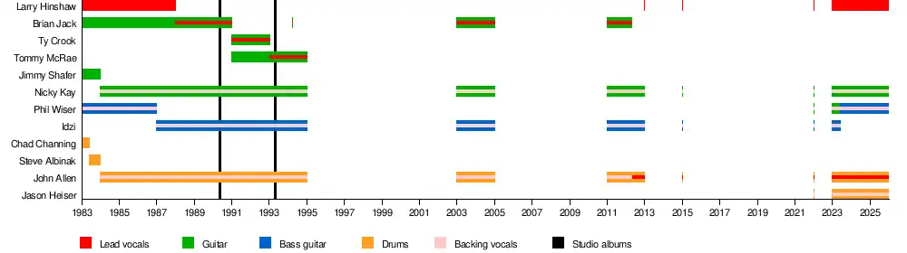 - Brian Jack – lead and rhythm guitar, backing vocals (1983–1988); lead vocals, lead and rhythm guitar (1988–1991, 1994, 2003–2005, 2011–2012)