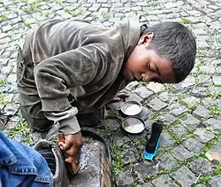 More visible forms of child labour includes street children in Casablanca, Marrakech, Fès and Mèknes. These children survive by selling cigarettes, begging, shining shoes, washing cars and working as porters and packers in ports.[34]