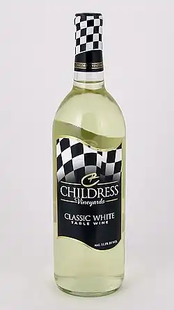 Childress Vineyards is a winery in Lexington, North Carolina owned by NASCAR Cup Series championship team owner Richard Childress. The connection between NASCAR and fine wine is reflected in the labeling of some of the wines produced by Childress, featuring a checkered flag motif.[1]: 81