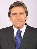 Alejandro Guillier was proclaimed by the Social Democrat Radical Party as candidate on 7 January 2017.[27] On 9 April 2017 he was chosen by the Socialist Party's Central Committee as its candidate after a secret election in which he beat former president Ricardo Lagos by nearly two-thirds of the vote;[28] he was proclaimed as candidate by that party on 21 April 2017.[29] On 7 May 2017, the Communist Party proclaimed him as their candidate.[30] On 13 May 2017 the Party for Democracy unanimously proclaimed him as their candidate in a show of hands.[31] As the New Majority coalition failed to organize a primary and Guillier decided to stay as an independent, he was forced to collect thousands of signatures in order to compete.[32] On 4 August 2017 he officially registered his candidacy before the Servel, presenting 61,403 signatures, more than the 33 thousand needed to register an independent candidacy.[24][25][26]