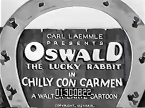 Chilly Con Carmen[1] (also known as Chile Con Carmen[2]) is a 1930 animated short film which was presented by Carl Laemmle and was produced by Walter Lantz,[1][3] who would go on to produce Woody Woodpecker with his wife, Gracie Lantz.[4] The film, which was animated by R. C. Hamilton, Tom Palmer and 'Bill' Nolan,[1] features Oswald the Lucky Rabbit, as he attempts to engage in a game of bullfighting[5] in order to charm a Mexican girl over his other girlfriend, Miss Hippo.[1][2]