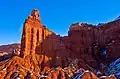 Chimney Rock is a 6,420-foot (1,960 m) summit in Capitol Reef National Park in Wayne County, Utah, United States.[2] This landmark is situated 2.5 mi (4.0 km) northwest of the park's visitor center, towering over 300 feet (91 m) above Utah State Route 24. Chimney Rock is also 2.5 mi (4.0 km) northwest of another of the park's landmarks, The Castle. Precipitation runoff from this feature ends up in the Colorado River drainage basin.[5] The Chimney Rock Trail is a 3.5-mile loop trail that takes hikers to a view of Chimney Rock from above Mummy Cliffs.