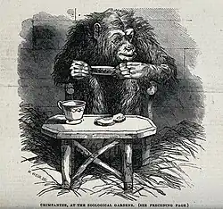 The Chimpanzee tea party was a form of public entertainment in which chimpanzees were dressed in human clothes and provided with a table of food and drink.[1][2][3]