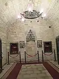 The stalactite mihrab, which consists of five tiers framed with a rectangle on the southern wall of the interior, forms certain motifs of Shirvan-Absheron architectural school.[5] There are small niches at the edges of the walls.[3]