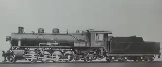 Needing a replacement for the Sorii-class locomotives transferred to the Manchukuo National in 1933, Mantetsu ordered the construction of replacements for use on light freight trains and for shunting duties. The result was the Mikasa (ミカサ) class, which was a smaller, lighter version of the Mikai-class 2-8-2s already in service,[1] and 43 were built in Japan for Mantetsu in 1934 by Kawasaki, Kisha Seizō, Hitachi, and Nippon Sharyō. Numbered 1400 through 1442, the last 22 - 1421 through 1442 - were built with a sloped tender designed to allow greater rearwards visibility during shunting operations. Later, some were fitted with a booster engine for use on mountainous lines.