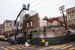 The building at 933–949 Stockton, which housed 56 low-income residents, was acquired by eminent domain[20] and demolished to make way for the new Chinatown station. As required by law, the residents were relocated to a new building at Broadway and Sansome built with the help of city and state grants, including $8 million from the San Francisco Municipal Transportation Agency (SFMTA).[21]