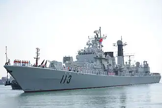 Qingdao (113) is a Type 052 destroyer of the People's Liberation Army Navy. She was commissioned in May 1997.