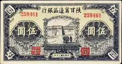 The Communist-controlled areas suffered less from the inflation as they each issued their own currencies and had a self-sufficient economy.[10] Prior to 1942, the Communist-controlled areas in Shandong primarily relied on CNC, which was exchangeable for British Pound Sterling and US dollars, with Communist-issued currencies pegged to CNC. However, following the outbreak of the Pacific War in 1941, the Japanese authorities banned CNC in territories under their control. They dumped hundreds of millions of CNC to acquire essential war supplies, posing a risk of depleting valuable resources from Communist-controlled areas. In response, the Communists decided to prohibit CNC usage. In 1943, the Communist government in Shandong established the Bureau of Industry and Commerce to stabilise their own currency. By purchasing strategic materials and providing financial support to agricultural and industrial production, the Bureau effectively curbed price hikes.[25] Faced with significant inflation, the Communists allegedly planted and sold opium to alleviate their financial difficulty, which supported their currency.[26]