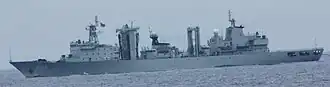 Type 903 integrated supply ship (NATO called Fuchi-class supply ship) is a new large-scale integrated supply ship of the Chinese People's Liberation Army Navy, designed by Zhang Wende. The later improved model is called 903A. The difference with 903 is that the displacement has increased from 20,530 tons to 23,000 tons.[2]