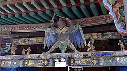 In the cosmology of the Wufang Shangdi, besides the Yellow Deity, the "Black Deity" (黑帝; Hēidì) of the north, winter and Mercury, is portrayed by Sima Qian as Huangdi's grandson, and is himself associated with the north pole stars.[81] The "Green Deity" (蒼帝; Cāngdì) or "Blue Deity" (青帝; Qīngdì), of the east, spring, and identified with Jupiter,[82] is frequently worshipped as the supreme God and its main temple at Mount Tai (the cult centre of all Eastern Peak Temples) is attested as a site for fire sacrifices to the supreme God since prehistoric times.[83]