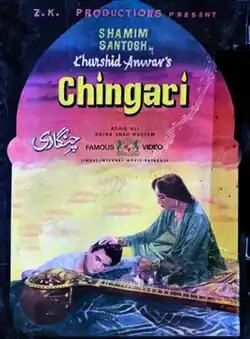 Chingari is a Pakistani black and white film directed by Khwaja Khurshid Anwar. It stars Shamim Ara and Santosh Kumar. Primarily known for its music, the film features song by Noor Jehan, Saleem Raza and Mehdi Hassan and lyrics by Qateel Shifai and Tanvir Naqvi. Released on 23 October 1964, the film performed average at the box office. It revolves around the clash between eastern and western civilizations.[1][2] Chingari is one of the signature films of Anwar for which he wrote the story and composed the music also.[3]
