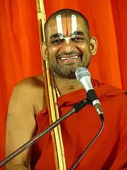Chinna Jeeyar (born 3 November 1956), more formally known as Sri Tridandi Srimannarayana Ramanuja Chinna Jeeyar Swami, is a Thenkalai Sri Vaishnava Indian religious guru and yogi ascetic known for his spiritual discourses and the propagation of Ramanuja Vishishtadvaita darshana. He operates spiritual centers in India and the US. He is the designer and planner of the Statue of Equality, a statue dedicated to Ramanujacharya, in Hyderabad, India. Recently, he has also unveiled the Statue of Union, a 90 ft statue of Hanuman, located in Sugar Land, TX. He has also guided the Telangana State Government in the renovation of Yadadri Temple. He is one of the few Jiyars who accepts disciples irrespective of their castes.[2]