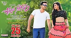The film reached the final stages of production in the fourth week of October 2014 and dubbing works were carried out simultaneously.[15] On 27 November 2014, Nithiin's father Sudhakar Reddy stated that the filming has been completed and post-production activities began.[16] The theatrical trailer was unveiled on 28 November 2014.[17] Pawan Kalyan was reported to make a cameo appearance in the film which both Karunakaran and Nithiin denied those reports as rumors but added that Nithiin will be seen as Pawan Kalyan's fan in the film.[18][19] Mishti described her character as a witty and intelligent girl named Nandini and said that her co-star Dhanya Balakrishna and the assistant directors helped her in pronouncing Telugu correctly.[20]