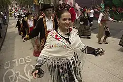 The Spanish shawls, also known as Manila shawls and mantón de Manila, have become traditional accessory for women in Spain and Latin America and is also a crucial feature in Flamenco dance costume.[49] The term Manila shawl itself is a misnomer, which appeared when the America-European people got confused concerning the origins and provenance of the shawl, thus leading to a misattribution to the Philippines.[50]: 252 These shawls of Chinese origins then became identified with Spanish ladies.[51]: 137