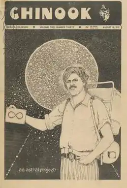 Chinook was a counterculture underground newspaper published weekly in Denver, Colorado, from August 21, 1969, to January 21, 1972. It was a member of the Underground Press Syndicate. A total of 117 issues were printed. In 1972 it merged with Boulder magazine to become The Straight Creek Journal,[1] which considered itself an alternative press rather than an underground press publication, publishing weekly from February 10, 1972, to August 7, 1980.[2] According to Abe Peck in his memoir Uncovering the Sixties, the original underground Chinook started to fall apart after a number of staffers left to become followers of Guru Maharaj Ji, who visited Denver and established a mission there in late 1971.[3]