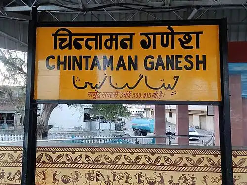 Chintaman Ganesh railway station is a small railway station in Ujjain, Madhya Pradesh, which is built near the Chintaman Ganesh Temple. Its code is CNN. This railway station is built across the Shipra River on the Ujjain–Fatehabad broad-gauge railway line. The station consists of double platform. The platform is well sheltered. The main railway station of Ujjain, Ujjain Junction, is always preferred over Chintaman Ganesh station for catching several trains.[2]