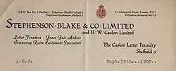 ![]() Stephenson Blake's letterhead logo in 1950 | |