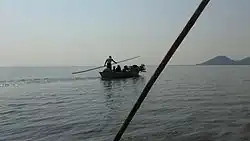 3,500 people live on the island. In 2018 the Lake began to dry up. People who fished for a living and for subsistence turned to creating charcoal from the island's trees to make money as the lake receded.[2]