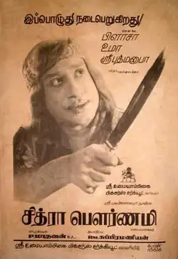 Chitra Pournami (transl. The full moon in the month of Chithirai)[1] is a 1976 Indian Tamil-language film, directed by P. Madhavan and written by Balamurugan. The film stars Sivaji Ganesan, Jayalalithaa, R. Muthuraman and C. R. Vijayakumari.[2] It was released on 22 October 1976.[3]