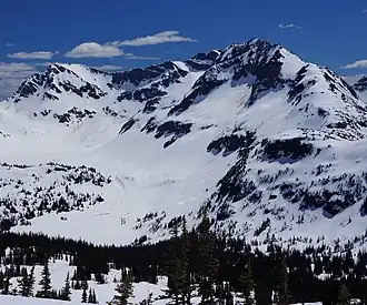 Chiwawa Mountain is located in the marine west coast climate zone of western North America.[3] Most weather fronts coming off the Pacific Ocean travel northeast toward the Cascade Mountains. As fronts approach the North Cascades, they are forced upward by the peaks of the Cascade Range (orographic lift), causing them to drop their moisture in the form of rain or snow onto the Cascades. As a result, the west side of the North Cascades experiences high precipitation, especially during the winter months in the form of snowfall.[3] Because of maritime influence, snow tends to be wet and heavy, resulting in high avalanche danger.[3] During winter months, weather is usually cloudy, but, due to high pressure systems over the Pacific Ocean that intensify during summer months, there is often little or no cloud cover during the summer.[3] Due to its temperate climate and proximity to the Pacific Ocean, areas west of the Cascade Crest very rarely experience temperatures below 0 °F (−18 °C) or above 80 °F (27 °C).[3]