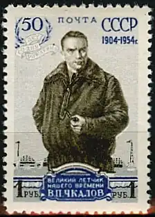 Valery Pavlovich Chkalov (Russian: Вале́рий Па́влович Чка́лов; IPA: [vɐˈlʲerʲɪj ˈpavləvʲɪtɕ ˈtɕkaləf]; 2 February [O.S. 20 January] 1904 – 15 December 1938) was a Russian/Soviet test pilot awarded the title Hero of the Soviet Union (1936).