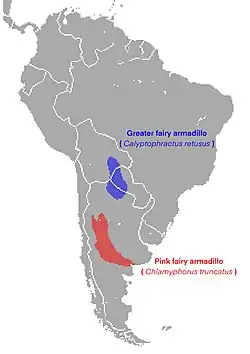 Chlamyphorinae is a subfamily of South American armadillos in the family Chlamyphoridae. Members of this subfamily, the fairy armadillos, are largely fossorial and have reduced eyes and robust forearms with large claws for digging.[2]