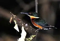 | A female American pygmy kingfisher in Costa Rica. Chloroceryle aenea is the type species. | |