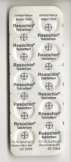 - ^ Krafts K, Hempelmann E, Skórska-Stania A (July 2012). "From methylene blue to chloroquine: a brief review of the development of an antimalarial therapy". Parasitology Research. 111 (1): 1–6. doi:10.1007/s00436-012-2886-x. PMID 22411634. S2CID 54526057.