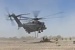 ![]() A CH-53E Super Stallion of the US Marine Corps prepares to lift a M777 Howitzer at Chocolate Mountain Aerial Gunnery Range during 2014 | |