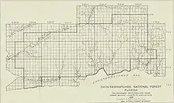 Choctawhatchee National Forest is a United States National Forest established by President Theodore Roosevelt on November 27, 1908. The supervisory headquarters was established at DeFuniak Springs and moved to Pensacola in September 1910. It remained there until 1936 when it was relocated to Tallahassee. The Choctawhatchee's two districts (Easy Bay-Camp Pinchot and Niceville) were separated by what is now State Road 85.