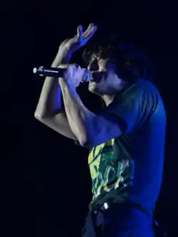 Choi has been described as an unrivaled "emotional craftsman" of his generation.[47][48] He is an all-round musician who writes, composes, arranges, and produces Jannabi's songs and a number of addictive radio logo songs. He also manages all aspects related to Jannabi's performances and albums. He plays various instruments but mainly uses an acoustic guitar and musical keyboard.[49] Choi cited artists he grew up listening to, such as Elton John, Sanullim, and The Beatles as his biggest musical influences.[50] He explored a wide array of genres, including folk, ballad, progressive rock, and chamber pop, with the intricate use of string orchestra and choir.[51] In addition, he reads a lot of books, particularly poetry collections, as inspirations for his musical style.[52][53][54] One of the examples of songs that drew inspiration from a poem was Jannabi's "I Know Where the Rainbow Has Fallen," in which the lyrics 'lonely island romantic' were quoted from Jeong Ji-yong's poem entitled "News of May."[55]