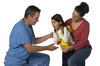 Choking rescue training devices are choking simulation equipment used by first aid learners to prepare for dealing with real world choking scenarios.[1][2] They have been approved and used by the European Resuscitation Council,[3] St John Ambulance,[4] and International Red Cross and Red Crescent Movement.[5] The simulation devices are used to demonstrate choking rescue techniques such as abdominal thrusts and backslap method and practice choking rescue protocols by American Heart Association and Red Cross.[6]