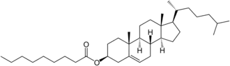 Cholesteryl nonanoate, also called cholesteryl pelargonate, 3β-cholest-5-en-3-ol nonaoate or cholest-5-ene-3-β-yl nonanoate, is an ester of cholesterol and nonanoic acid. It is a liquid crystal material forming cholesteric liquid crystals with helical structure. It forms spherulite crystals.[1]
