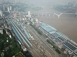 Chongqing railway station (simplified Chinese: 重庆站; traditional Chinese: 重慶站; pinyin: Chóngqìng zhàn) is a railway station of Chengyu Railway, Xiangyu Railway, Chuanqian Railway, Chengyu Passenger Railway, that located in People's Republic of China. It is a transportation hub of Chongqing in China.