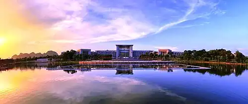 Chongzuo is located in southwestern Guangxi Zhuang Autonomous Region. It borders Nanning to the east, Baise to the north, Fangchenggang to the south and Lạng Sơn, Vietnam to the west.[2] The Zuo or Left River and the You or Right River have their confluence in Chongzuo after which the river becomes the Yong River. Chongzuo is mountainous and hilly with numerous karst formations similar to Guilin and northern Vietnam's Ha Long Bay.[3] Its area is 17,732 km2 (6,846 sq mi), 10,529 km2 (4,065 sq mi) of which is forested.[4]