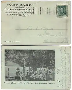 - ^ "Family spends 10 days at Chouteau Springs Resort". St. Louis Post Dispatch. St. Louis, Missouri. August 10, 1902. p. 14.