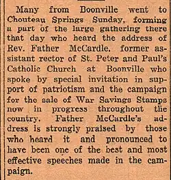 - ^ "Boonville Considers Piping Mineral Water from Chouteau Springs to Boonville". The Lexington Intelligencer. Lexington, Missouri. May 13, 1882. p. 4.