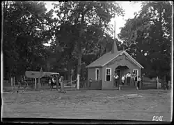 The U.S. Post Office "Chouteau" [24] was established in 1890 and remained in operation until 1896.[25] The following were appointed as U.S. Postmasters of the Chouteau post office: Homer Edson (appointed 18 June 1890), George Gross (23 January 1891), Benj Bowles (11 September 1891), Hiram Shrout (9 July 1892), Mary Shrout (16 June 1893). Chouteau post office responsibilities reverted to Lamine on 4 January 1896.[26]