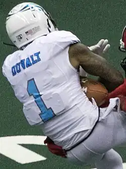 Duvalt was assigned to the New Orleans VooDoo on September 30, 2011.[9] December 20, 2011, Duvalt was placed on the other league exempt list.[9] On June 25, 2012, Duvalt was activated from the other league exempt list.[10] Duvalt performed well in limited time with the VooDoo in 2012.[11] Duvalt was assigned to the VooDoo again on October 26, 2012.[9] Just 7 games into the 2013 season, Duvalt was placed on injured reserve after tearing his ACL, ending his season.[9] Duvalt missed a majority of the 2014 season, recovering from the ACL injury, but he returned Week 18 in a VooDoo victory over the Sharks.[12] Duvalt was assigned to the VooDoo again on March 10, 2015. Duvalt posted career highs with 109 receptions, 1,265 and 23 touchdowns.[13]