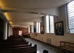 Also in 2009, after nine years in the making, Gollon's series of paintings of the Fourteen Stations of the Cross was installed in the Church of St John on Bethnal Green in East London. They were blessed by the Bishop of London, Richard Chartres, in March 2009. In the same month, British novelist Sara Maitland's book Stations of the Cross, inspired by and featuring Gollon's paintings, was published.[24] The book also contains a text by Fr Alan Green about the story of the commission and his personal collaboration with the artist. To bring the story closer, Gollon used his own son as the model for Jesus, his daughter as Mary, and Fr Alan Green as Nicodemus. Gollon's Fourteen Stations of the Cross are site-specific and permanently installed. They are both an active aid to worship and also make the Church of St John on Bethnal Green a visitor attraction in East London.[25]