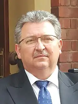 Chris Hunsinger (born 23 October 1962) is a South African politician.[2] a Member of the South African Parliament[3] since 2014, Caucus Whip[4] and Treasurer[5] with the Democratic Alliance (South Africa) .[6] He was appointed by the then Leader of the Opposition Mmusi Maimane on 5 June 2019 and retained by the current Leader of the Opposition John Steenhuisen in October 2019[7] and again in December 2020,[8] as The Shadow Minister of Transport. Hunsinger was re-elected to Parliament on 29 May 2024[9] as Spokesperson for Transport [10] and as a member in the National Portfolio Committee of Transport. He speaks and writes about issues related to consumer and commodity needs in transport, including safety,[11] planning, finance and management with South African roads,[12] rail,[13] maritime,[14] and aviation service providers.[15] Following his re-election to parliament in 2024, he was appointed a member of the Joint Standing Committee on Financial Management of Parliament. During the parliamentary plenary session on 25 July 2024, Hunsinger was elected to the Board of Trustees as Parliamentary Representative of the Political Office Bearers Pension Fund and subsequently as Chairperson of the Investments sub-committee.[16]
