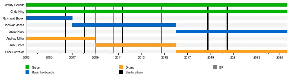 1. ^ There is some ambiguity as to their exact year of formation as sources have reported various years between 2002 and 2005. While the latter is the most-often reported year, the band's original website shows the group was active by 2004.