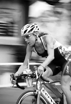 She became, after meeting the parents of Jon Blais at her first world championship, an ambassador for the Blazeman Foundation, performing a "Blazeman roll" in his memory at the finish line of all her triathlon races since then.[7] She campaigns for full equality of women in prize money, sponsorship, and media reporting of sport, and equal opportunities, notably in cycling, for women to be able to compete on the same terms, and over the same race distances, as men.[8] She was a founding member of Le Tour Entier, which campaigned for a Women's Tour de France and improvements to women's cycling generally.