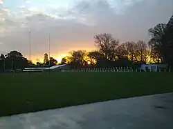 Sport is compulsory for all boys; there is an extensive selection of sports available with boys choosing both a summer and winter option each year.[15] As well as school sports, there are ongoing inter-house sports competitions, where all students are expected to participate in, or to come and support their houses. Extra sporting activities are also available: for example, the school ski club buses to the ski fields on weekends during winter terms. Sports facilities on site include Upper, the school playing field, an all weather facility, a 5-lane indoor 25-metre heated swimming pool, gymnasium and weights room. Offsite facilities include the nearby Christ's College cricket ground (which also has football and rugby fields) which consists of four hectares of South Hagley Park, and Kerr's Reach on the Avon River which is home to the Christ's College rowing club, consisting of a boat house which houses top quality rowing equipment. It is claimed that a form of rugby was being played at the school as early as 1853.[16] Each year its rugby team plays with Wanganui Collegiate School, Wellington College and Nelson College in a tournament known as the "Quadrangular". It also has a long-running rivalry with Christchurch Boys' High School, and an annual rugby match between the two schools is fiercely contested.