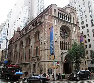 Located at the northwest corner of Park Avenue and 60th Street, the church was built primarily during 1931–1933. Church services began in 1933 but financial impacts of the Great Depression and shortages of World War II prevented the mosaics planned for the interior from being executed until 1948–49. The church was designed by Ralph Adams Cram, who is known for his Gothic Revival ecclesiastical architecture. While designing this church, he used a combination of Romanesque and Byzantine Revival styles instead.[1]