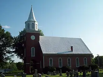 Christ Episcopal Church is a historic Episcopal church located at Chaptico, St. Mary's County, Maryland, United States. It was constructed in 1736 of Flemish bond brick construction with glazed headers, 60 feet long and 40 feet wide, with an original semicircular brick apse. In 1913, a three-story brick tower with octagonal belfry and spire was added to the west end of the church. The building was constructed under the supervision of Philip Key, vestryman, who was the great-grandfather of Francis Scott Key. The building was heavily damaged on July 30, 1814, during the War of 1812, when an admiral of the British fleet came ashore and took possession of the village of Chaptico. Surrounding the church is a cemetery with 18th, 19th, and 20th century markers, including a vault for the Key family.[2] Christ Church Parish was one of the original 30 Anglican parishes in the Province of Maryland.