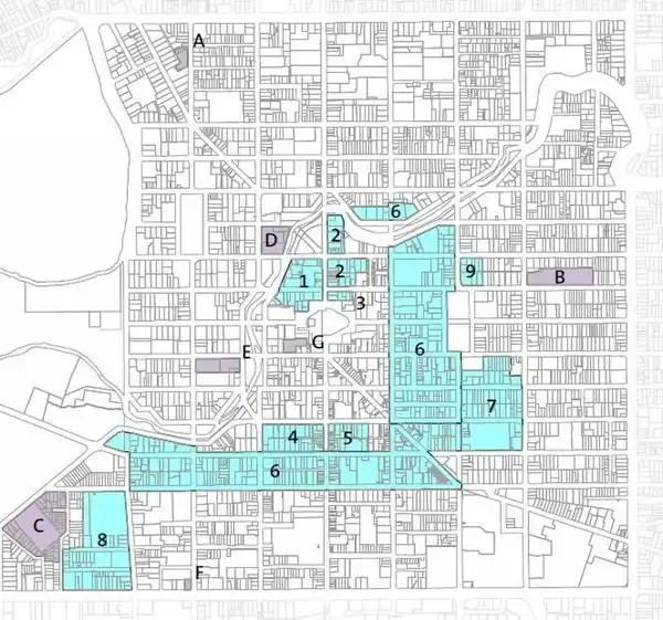 - ^ The Performing Arts Precinct is shown as number 2 on the designation plan.