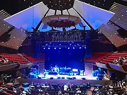 Marshall designed the main hall to have reflection panels on the sides of the auditorium.[9] Acoustic design at the time was typified by an extended rectangular shape to achieve the desired sound quality, but none of the competition entries that Marshall saw were that shape; the final entry by Warren and Mahoney being elliptical. Therefore, he took inspiration from the Royal Festival Hall, devising the usage of panels to direct sound around the hall.[10] This innovative feature formed the basis for modern concert hall design across the world; Marshall went on to advise on the Philharmonie de Paris and the Guangzhou Opera House.[9]