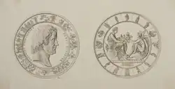 In 1835, he was made an associate member (agreeret) of the Academy and received as the subject of his admissions work a medal commemorating the homecoming of Bertel Thorvaldsen's works. The medal in silver would in the future be awarded to artists for exceptional contributions to the annual Charlottenborg exhibitions. Christensen was based on the model for the medal admitted as member of the Academy in 1838, but his work with the stamps was hit by a number of accidents and it had therefore not yet been completed when the Exhibition Medal was awarded for the first time to Martinus Rørbye in 1839. In 1842, it was finally possible to present Thorvladsen with the first medal in gold.[1]